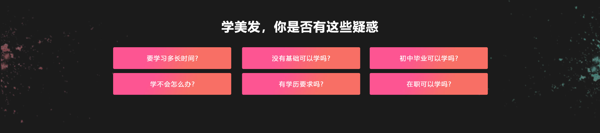 我們不僅學(xué)習(xí)專業(yè)的技能,還有一整套完善的就業(yè)創(chuàng)業(yè)課程體系能夠幫助學(xué)生提高就業(yè)率,提高待遇,增強(qiáng)自信心,以及在實際工作和開店中現(xiàn)場應(yīng)對能力